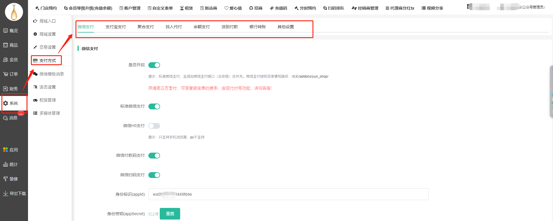 目录 搜索 展开 模王系统准备资料模王系统对接上线操作指南1、服务号的申请流程及认证2、申请小程序流程3、微信商家入驻流程4、开放平台绑定小程序和公众号5、公众号对接后台流程6、小程序对接后台流程7、模王系统支付对接操作指引8、小程序相关操作指引8.1提交小程序审核注意事项8.2小程序发布流程(用户隐私协议更新)8.3小程序发货管理系统8.4小程序备案8.5小程序用户隐私协议8.6小程序更换主体8.7开通小程序直播流程8.8小程序直播操作指南8.9关于小程序订单中心页设置的公告8.11小程序跳转H5页面8.12小程序更新版本8.13公众号快速注册并认证小程序8.14小程序年审8.15小程序客服8.16常见小程序问题1、怎么获取了聚合cps取链的小程序链接,在小程序打开空白?2、访问小程序商城:数据获取失败/获取用户信息失败/加载中3、小程序打开首页提示暂无浏览权限4、在小程序下单点击微信支付没反应5、小程序商城出现“签名验证失败,解决方法见:http://lbs.qq.com/faq/serve6、进小程序显示此key每日调用量已达到上限7、访问小程序显示 request:fail url not in domain list的处理方法8、在后台提交小程序审核,提交失败原因:tag is in invalid format hint:9、上传含直播小程序代码提示系统错误的原因10、小程序开发管理,接口设置提示暂无权限是什么问题?11、请求参数信息有误location参数格式有误12、小程序商品海报生成报错8.17小程序直播锁客规则8.18小程序对接企业微信客服8.19订单信息录入8.20【小程序平台】开通web-实时日志9、汇聚支付9.1汇聚支付-微信支付汇聚支付代付汇聚支付快捷支付10、支付宝支付10.1注册企业支付宝账号开通的操作指南10.2支付宝支付对接流程10.3支付宝提现流程10.4手机端注册企业支付宝账号11、短信配置11.1 阿里云短信对接后台11.2腾讯云短信配置12、企业付款到零钱功能开启(佣金发放功能)13、境外主体申请并认证服务号流程14、快递鸟15、企业微信设置企业微信后台企业微信部门企业微信-应用企业微信-员工16、微信服务商特约子商户关联说明17、打印机设置打印机添加模板商家转账到零钱申请文档参考系统设置模王系统-系统框架商城管理-概况商城管理-商品1、发布商品2、商品列表3、商品表单4、商品分类5、品牌管理6、配送模板7、评论管理8、优惠券管理9、商品标签10、退货地址设置11、满额优惠12、批量操作13、配送方式14、基础设置15、商品隐藏商城管理-会员1、全部会员2、会员等级3、会员分组4、资格申请5、会员设置会员合并机制说明6、推广中心设置7、会员邀请码使用记录8、会员关系链修改8.1关系链修改记录8.2会员导入9、会员合并记录10、账号注销管理11、会员设置中心商城管理-订单1、订单管理列表2、订单处理流程3、订单状态4、订单修改价格5、订单退款退货(文档说明)6、多包裹发货7、批量发货订单操作步骤8、催发货订单9、物流查询商城管理-财务1、余额设置2、会员余额3、充值记录4、转让记录5、余额明细6、收入明细7、提现设置8、提现统计9、提现记录 10、积分管理11、转账审核12、收益广告13、批量充值14、余额充值指定支付商城管理-系统1、商城入口2、商城设置①、商城设置百度统计功能②、订单设置③、物流查询④、短信阿里云短信配置腾讯云短信设置腾讯云短信资质管理⑤、联系方式⑥、分类⑦、优惠券⑧、分享⑨、幻灯片⑩、广告位⑪、资产密码⑫、地图设置⑬、API应用⑭、邮箱配置3、交易设置客服设置4、支付方式微信支付聚合支付其他支付微信支付/提现异常提示说明5、微信模板消息自定义消息模板(新版)自定义消息模板小程序消息模板公众号模板消息变更公告6、语言设置7、权限管理8、多媒体管理商城管理-消息商城管理-应用商城管理-统计2.0商城管理-装修DIY1、模板管理2、店铺页面2.1、装修增加跳转视频号2.2增加抖音装修类型3、顶部导航4、底部导航5、DIY模板市场6、首屏广告7、创客贴--图片智能设计8、基础设置9、装修DIY尺寸建议模王系统入口类1、小程序2、公众号2.1自定义菜单-公众号底部导航2.2自动回复2.3素材管理2.4粉丝管理2.5公众号常见问题2.6更换域名后公众号/小程序/商城等需要调整的内容3、pc前端模板3.1基础设置3.2广告管理-PC端模板1设置3.3首页商品设置3.4前端页面3.5登录方式3.6PC端--PC端模板24、APP设置4.1基础设置4.2APP分享4.3消息推送4.4消息列表4.5APP页面装修4.6打包封装APP需要提供的资料清单1、如何注册和认证微信开放平台 2、如何创建APP移动应用?3、App微信支付接入4、如何获取商城封装APP的隐私政策和用户协议链接 4.7【安卓版】APP发布方案 5、子平台模王系统行业类插件操作指南1、供应商1.供应商操作手册2.后台供应商插件3.供应商基础设置4.供应商前端页面显示5.供应商保单功能-可供保险行业提交保单信息使用2、门店-收银台1、门店申请和使用步骤2、门店管理①、门店-收银台 营销设置②、门店-收银台 分润设置连锁店老板3、门店分类4、门店申请5、门店审核6、门店商品7、门店商品订单8、收银台订单9、提成明细10、数据统计11、核销员12、基础设置收银台买单增加语音播报功能(会员推送)13、默认设置14、门店装修15、门店余额16、门店独立模板17、门店广告18、收银台语音播报3、上门安装4、门店配送5、微社区6、跑腿配送7、同城配送8、虚拟